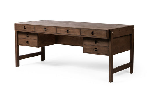 Four HandsCrafted from rich toasted oak, this desk features brass-finished bolt covers that enhance its visual appeal. With eight drawers and open shelving, ...